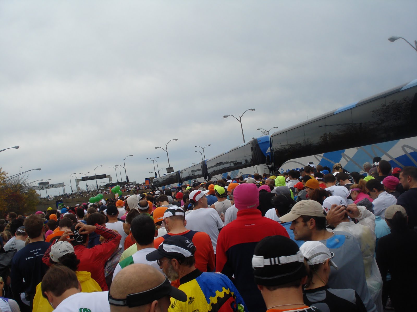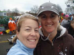Erin and I parted ways about 40 minutes before the start – she was classified as “sub-elite” and I was a lowly “local competitor” (a source of endless comedy for us), so we were in different corrals. I dumped my bag at the UPS truck that would deliver it to the finish line and amazingly, met up with Mel Day – another Whistler runner. I couldn’t quite believe that amongst 47, 000 runners we found each other! More standing around until finally the national anthem played and the canon sounded and we were off!