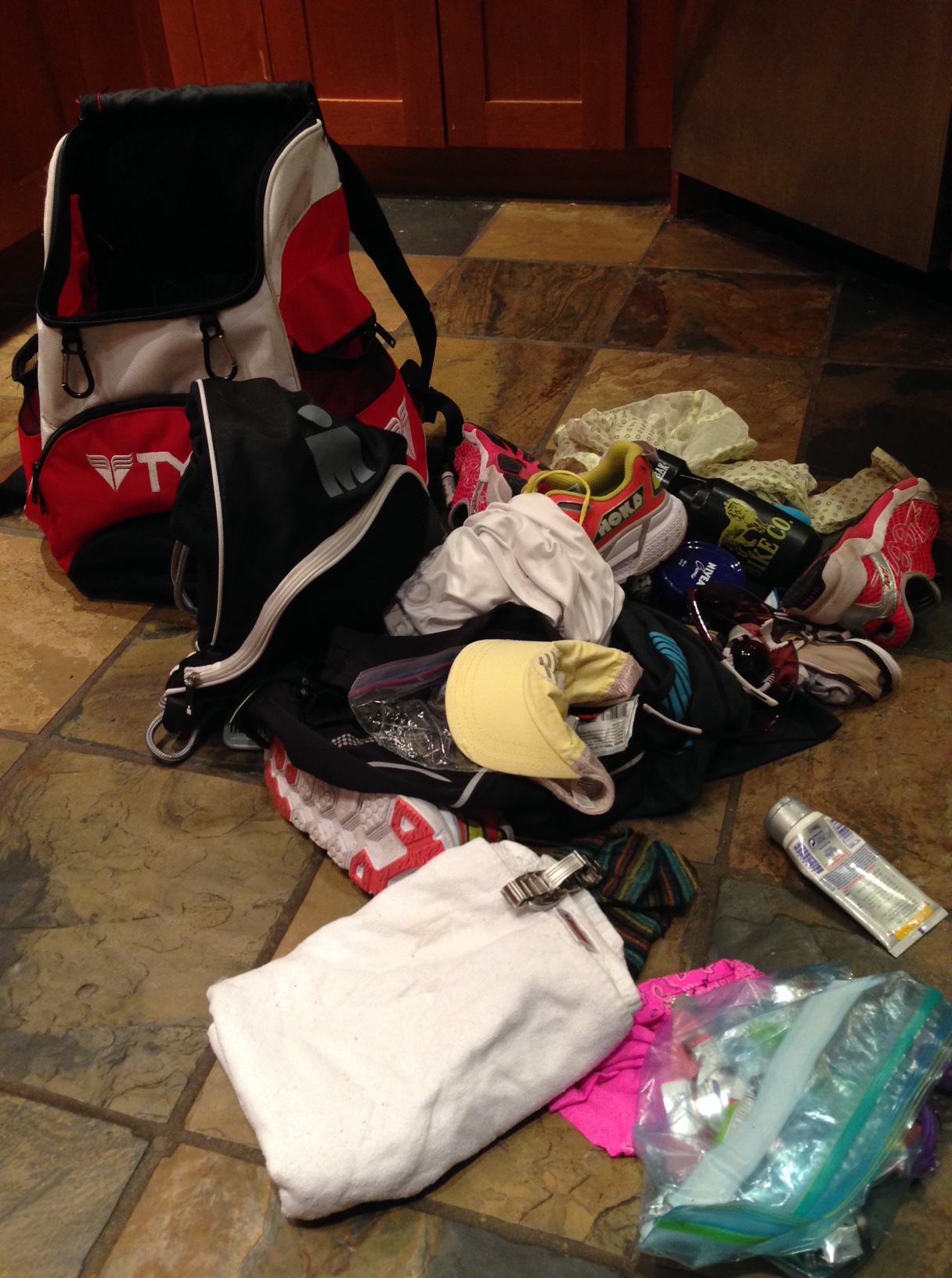 Since I am currently training for Ironman (and stuff) and spending a few days a week out of the house away from a home base, I tend to rely on this bag more frequently than usual. So I thought I’d play the game with myself.
