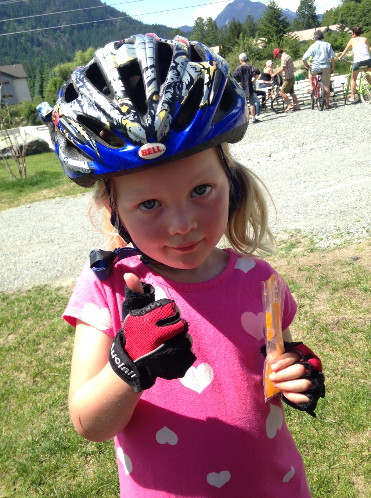 I caught back up to Heather and I did a decent job of being careful for the next little while. We chatted, laughed and sweated for a good chunk of time together. Her family met us at the top of a climb and it was so fun to get a hug and a high-five mid-race, right before a killer climb.